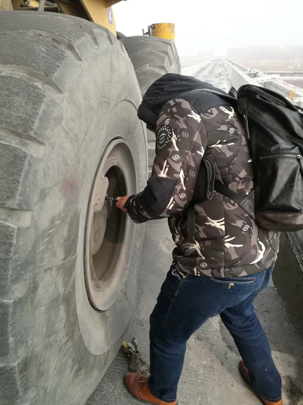 泰凯英工程师现场测量轮胎气压,做数据跟踪。