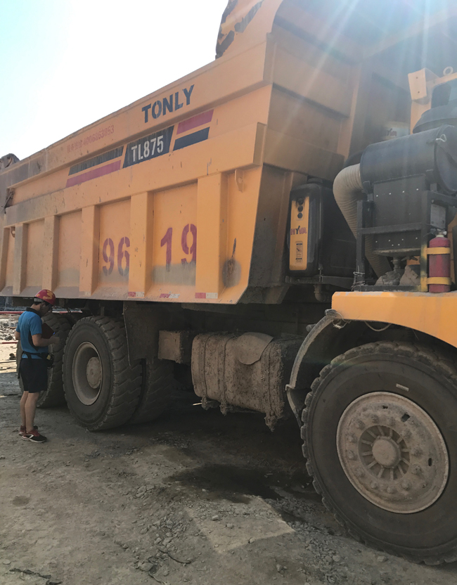 这是泰凯英第二次到该矿山进行产品测试,原来产品虽能达到一定的使用寿命,但是仍未满足泰凯英原来的预期,在新的产品出来以后马上进行第二轮的产品测试,此次测试产品为泰凯英推出的宽体车第三代产品,花纹编码 SUPER ETOT。